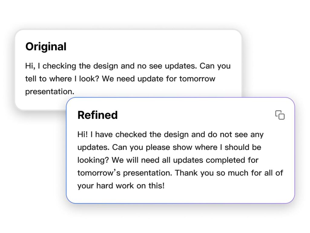 Soạn thảo, chỉnh sửa và tinh chỉnh tài liệu kinh doanh cùng với AI và xuất các tài liệu này một cách liền mạch.